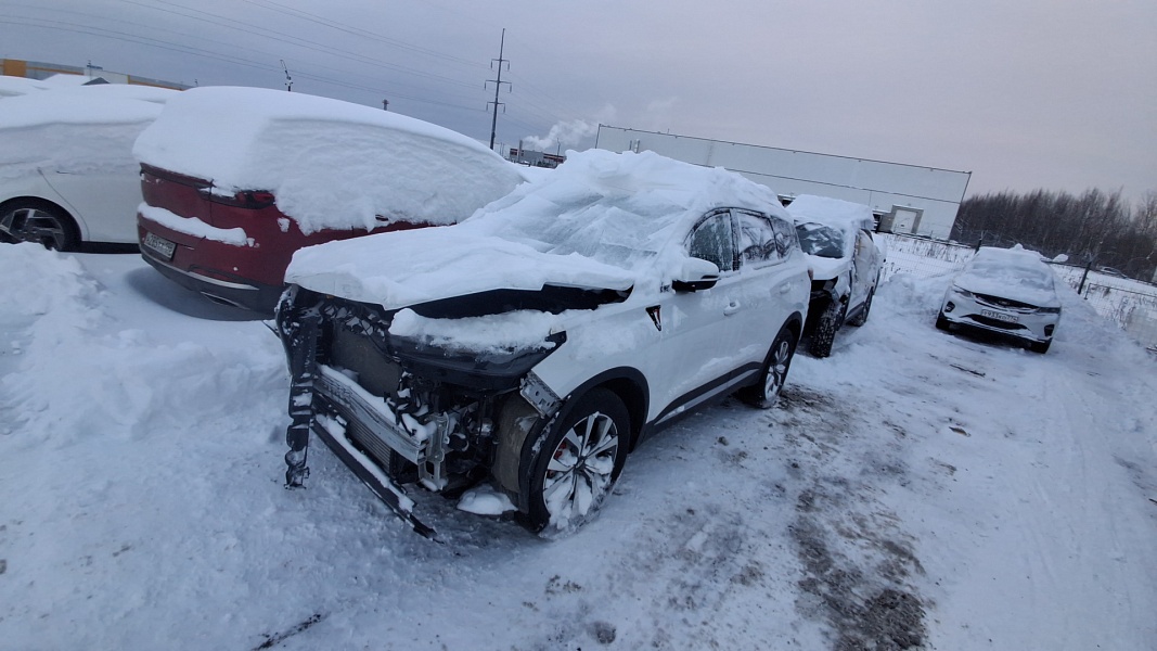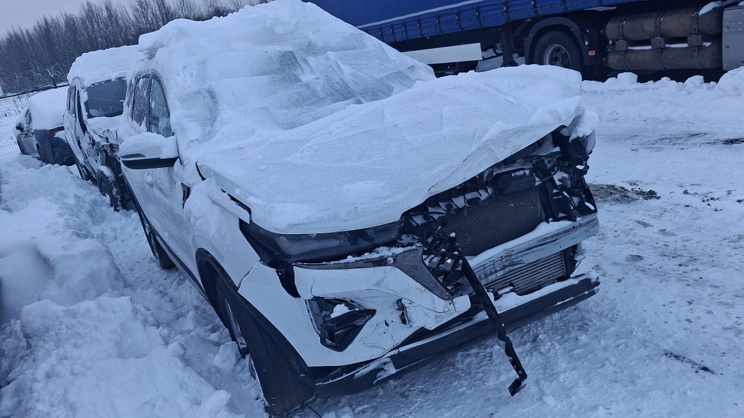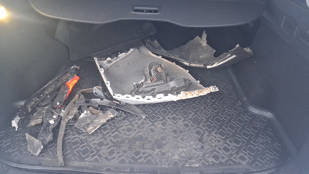 Транспортное средство после ДТП, отсутствует передний бампер, решетка, передние фары.