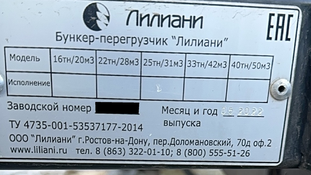 • Осветительные приборы (внутри бункера и на верхней части вертикального шнека)
