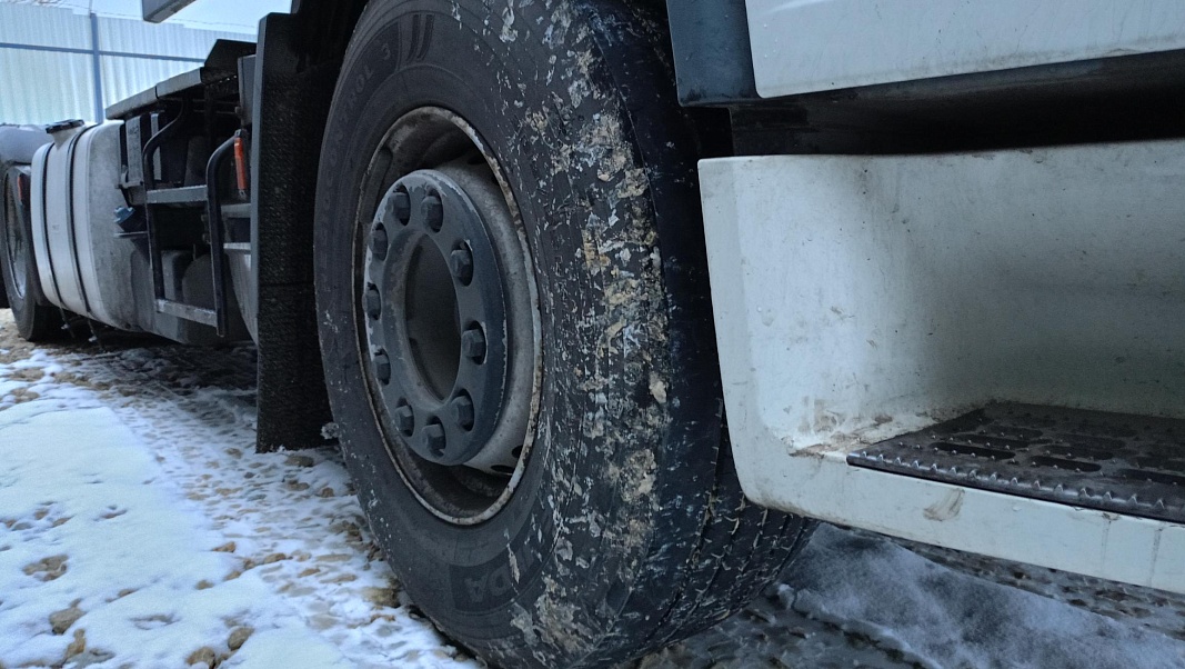 · Первая передняя ось: размер шин 385/65R22.5, Goodyear типа KMAXS2, индекс нагрузки 160/000, индекс скорости K, для установки на управляемую ось для региональных перевозок. Маркировка шин: сопротивление качению B - сцепление с мокрым дорожным покрытием B - шум 70 дБ(A)